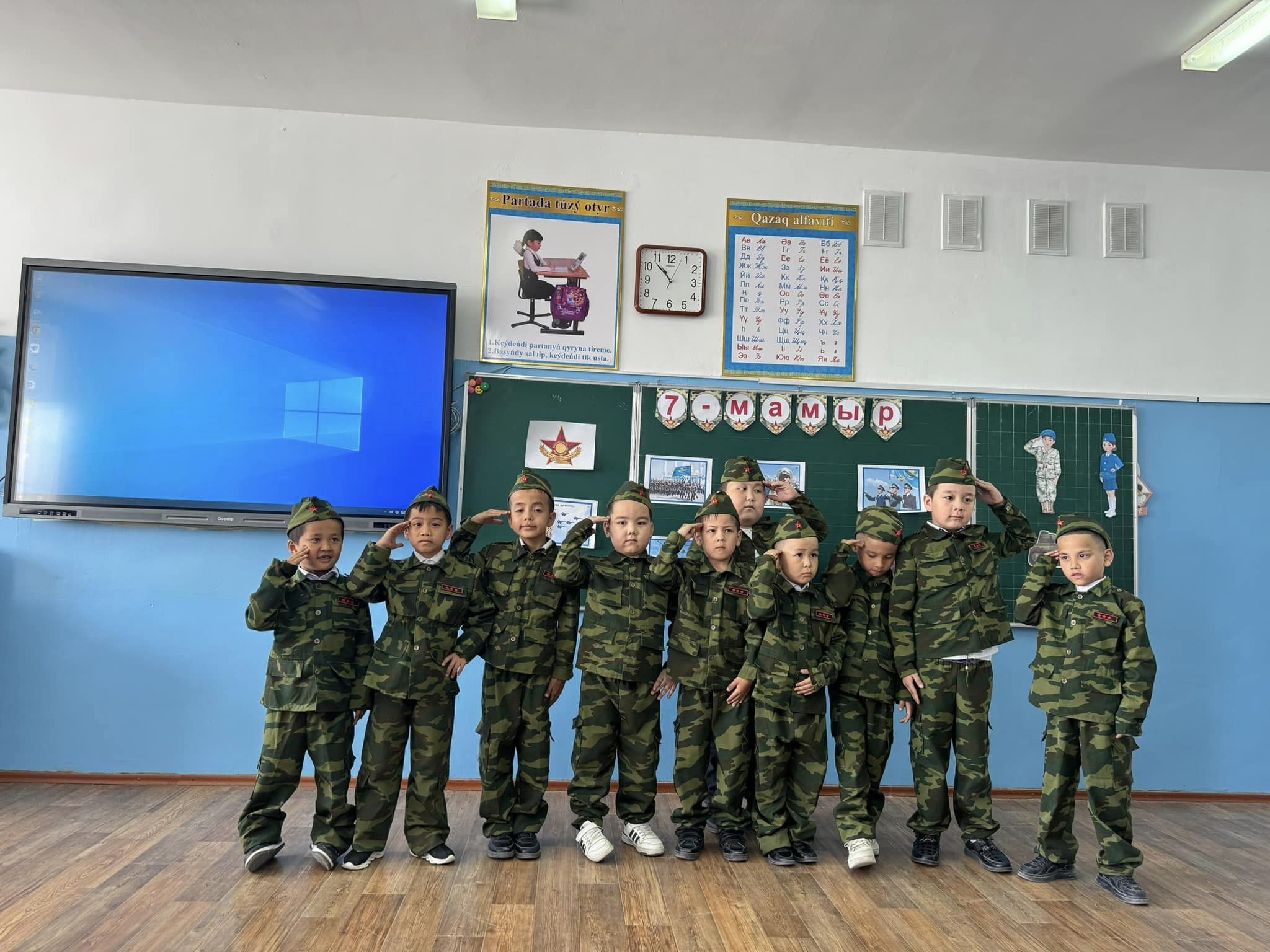 1-ші "Д" сынып жетекшісі Қыдырбаева Жазира сыныбымен 9 мамыр - Жеңіс күніне байланысты "Ұлттық әскер тәуелсіздік тірегі" тақырыбында тәрбие сағатын өткізді.