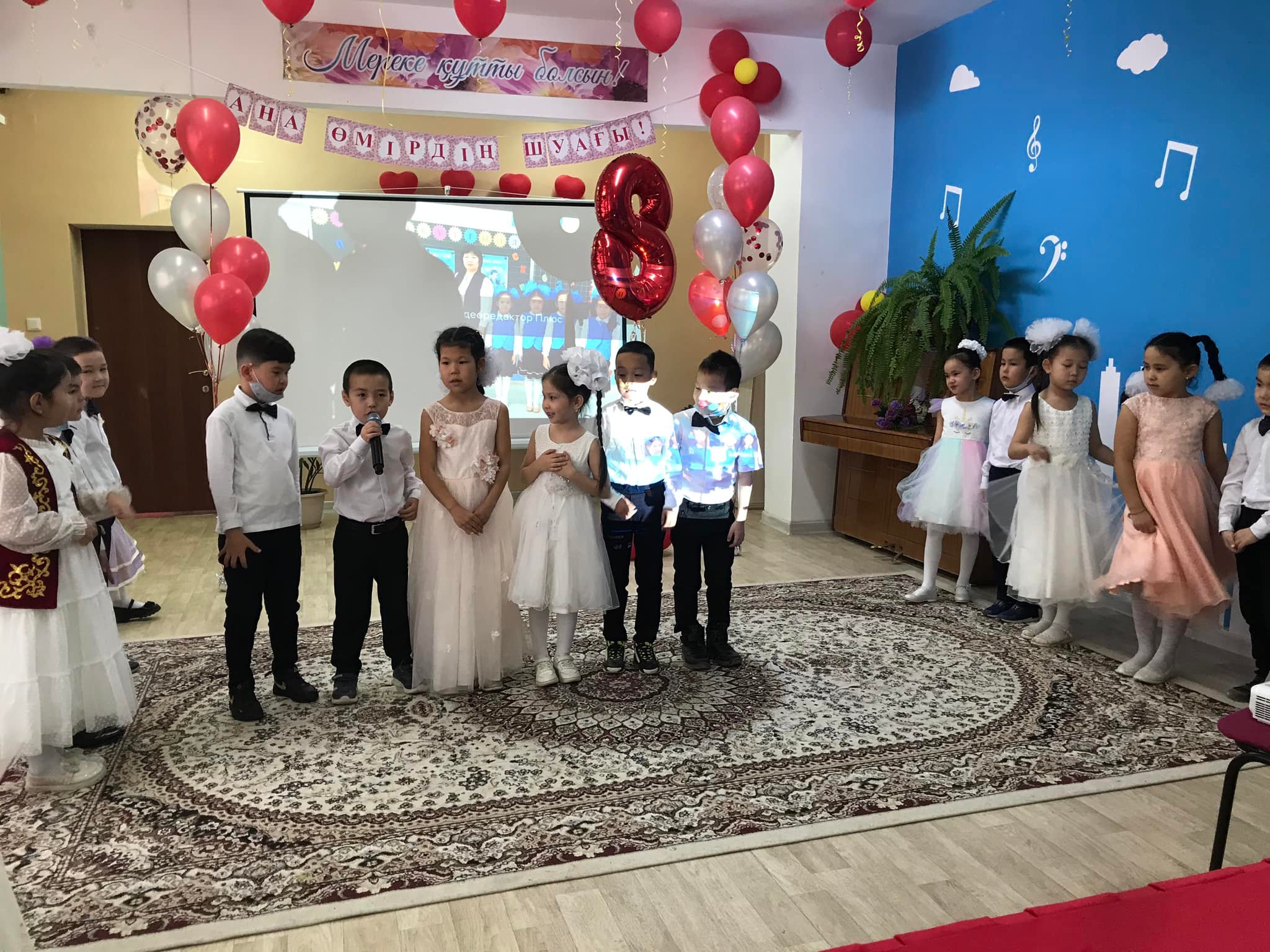Мектебіміздегі мектеп алды даярлық "А", "Ә" тобының жетекшісі Утегенова Гаухар 8 наурыз мерекесіне орай "Ардақты ана, Батыр ана, Ер ана" тақырыбында тәрбие сағатын өткізді.