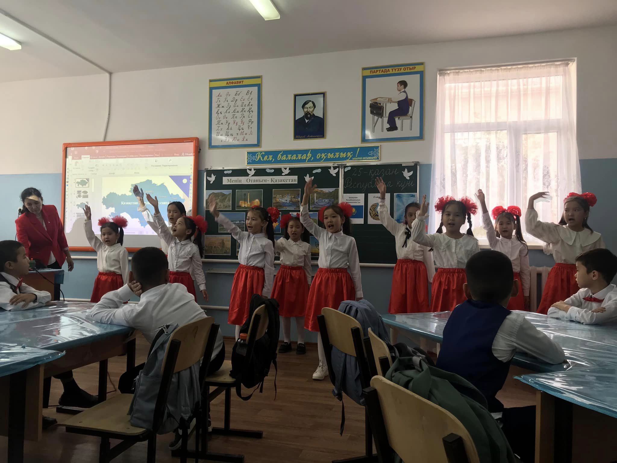Тәрбие жұмысының "Театр және балалар" жобасы бойынша мектебімізде 4-ші сыныптар арасында "Театрдың таңғажайып әлемі" тақырыбында ертегілерден көрініс сайысы өтті. Сайыстың мақсаты: Театрландырылған қойылымдар арқылы оқушылардың эстетикалық талғамын, қиялын дамыту. Олардың өмірге деген көркемдік көзқарастарын ,адамгершілік қасиеттерін қалыптастыру. Ертегі қойылымдары арқылы сөздік қорларын байыту,кейіпкерлердің іс-әрекеттері мен дауыс ырғақтарын сәйкестендіре дұрыс сөйлеуге