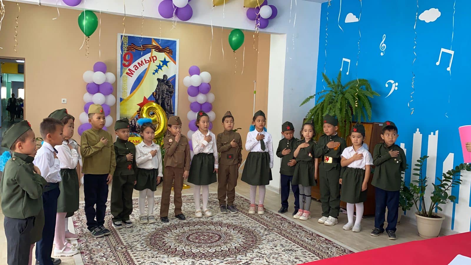 3 "А" сынып жетекшісі Джайлыбаева Нина Жеңіс күніне орай "Бейбіт күн жасасын әлемде!" тақырыбымен тәрбие сағатын өткізді. Ұлы Отан соғысына қатысқан Қазақстандық батырлар, 28 Панфиловшылар дивизиясы туралы әңгімелеп, оқушылар тақпақтар мен әндер айтты.
