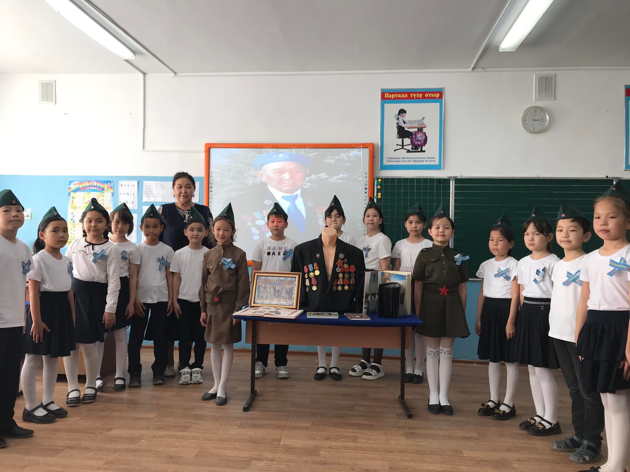 3 "А" сынып жетекшісі Джайлыбаева Нина Жеңіс күніне орай "Бейбіт күн жасасын әлемде!" тақырыбымен тәрбие сағатын өткізді. Ұлы Отан соғысына қатысқан Қазақстандық батырлар, 28 Панфиловшылар дивизиясы туралы әңгімелеп, оқушылар тақпақтар мен әндер айтты.