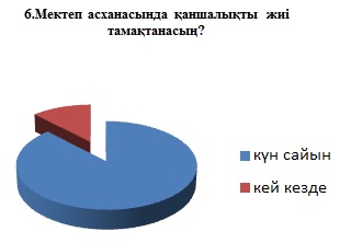 Маңғыстау облысының білім басқармасының Жаңаөзен қаласы бойынша білім бөлімінің «№12 бастауыш мектеп» КММ-де 2-3-4 сыныптардың 132 оқушыларының арасында өткізілген "Оқушылардың дұрыс тамақтануы"бойынша сауалнаманың АҚПАРАТЫ