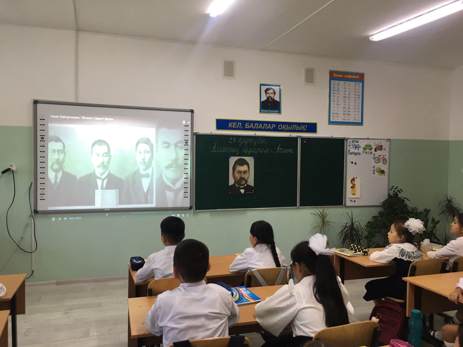 Мектебімізде Қазақстан халқы тілдері күніне және Ахмет Байтұрсыновтың туғанына 150 жыл толуына байланысты іс-шаралар жоспары жасақталып өткізілуде. Соның бірі 2-ші "А" сынып жетекшісі Қосниязова Толқын оқушыларға "Алаштың ардағы-Ахмет" фильмін көрсетті. Фильмнің негізгі идеясы ретінде Ахмет Байтұрсынұлының: «Бай болу үшін кәсіп қылу керек, білімді болу үшін оқу керек, күшті болу үшін бірлік керек һәм осы керектердің жолында әрекет қылу керек» деген әйгілі сөзінің мағынасын