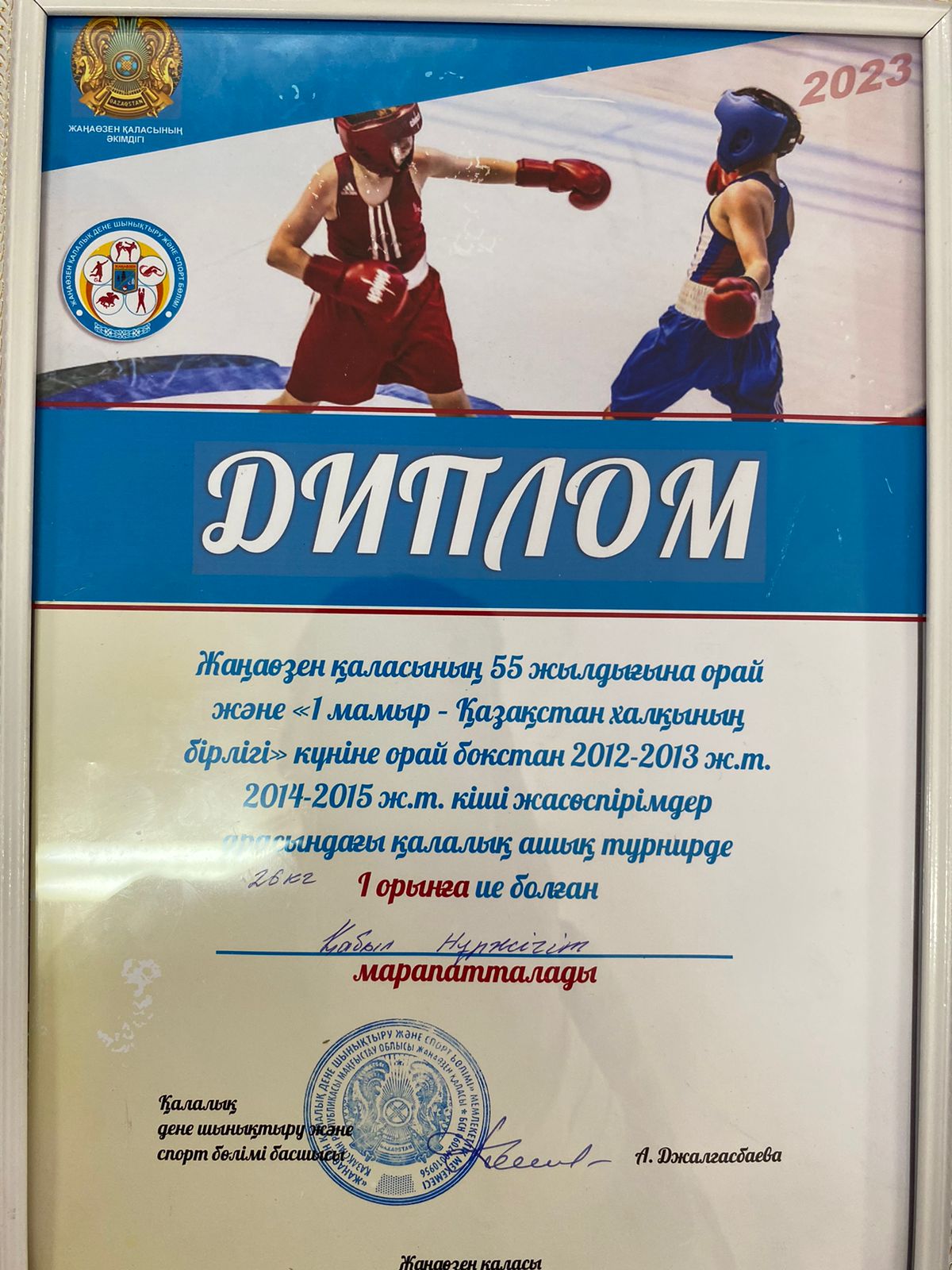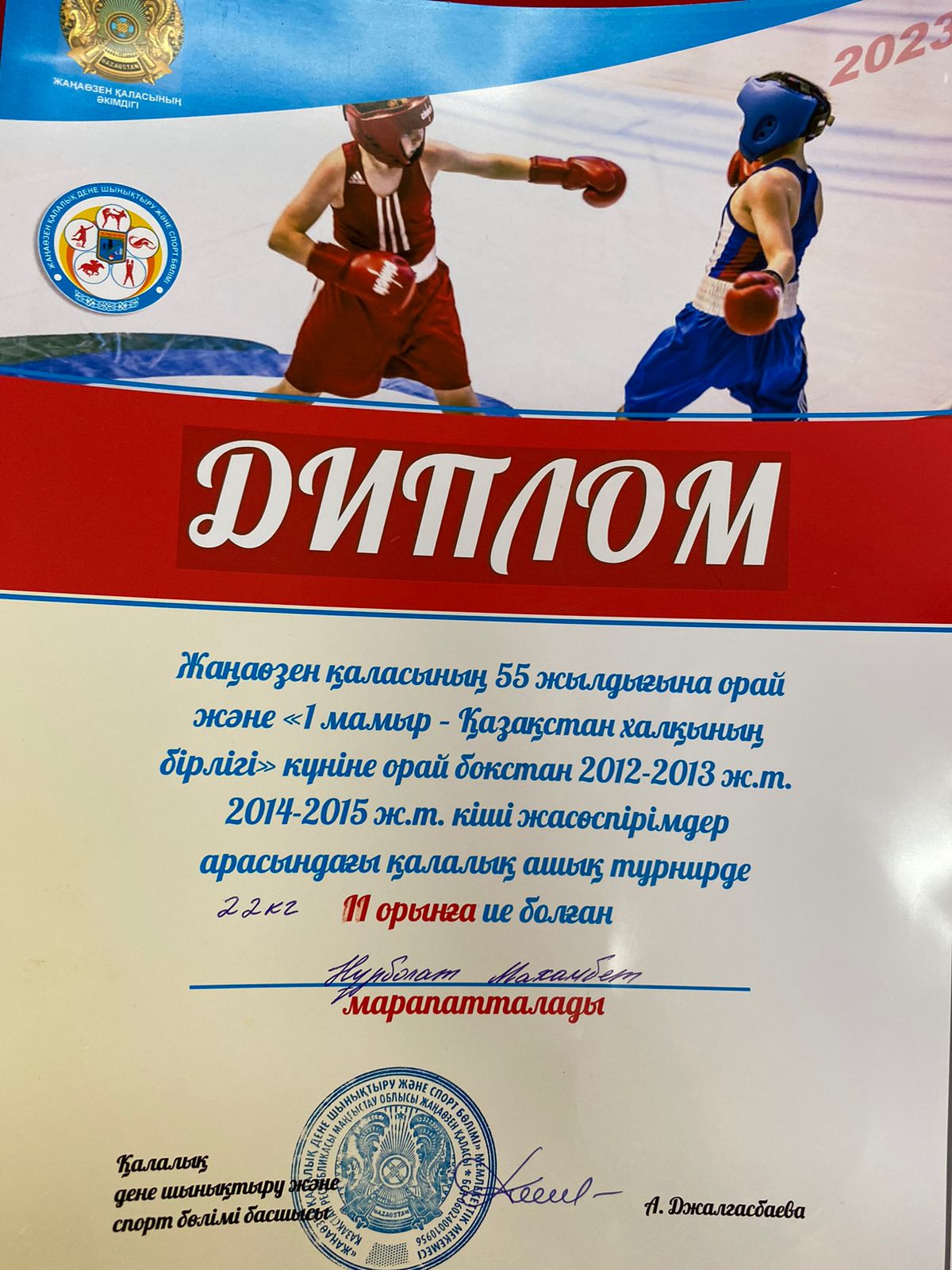 Мектебіміздің 2-ші "В" сынып оқушылары Нұрболат Махамбет, Қабыл Нұржігіт Жаңаөзен қаласының 55 жылдығына және "1 мамыр - Қазақстан халқының бірлігі" күніне орай бокстан кіші жасөспірімдер арасындағы қалалық ашық турнирде І және ІІ орындарды иеленді. Оқушыларымызды жеңістерімен құттықтаймыз!
