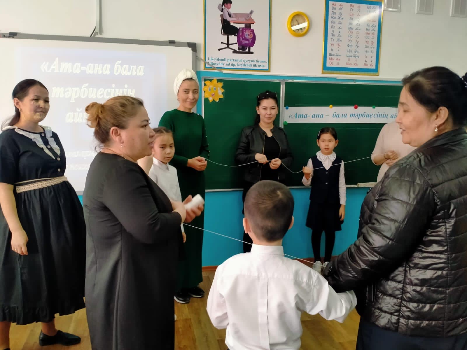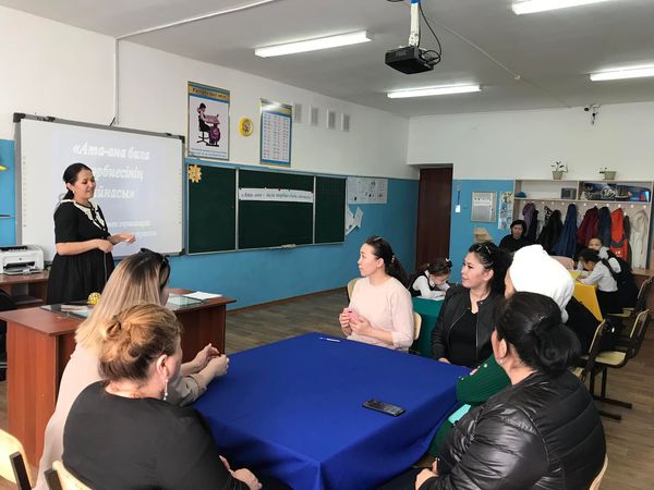 Сәуір айындағы "Ашық есік күніне" байланысты мектеп психологы Байгасиева Сымбат мектеп, ата-ана, оқушы - үштік одағының бірлігіне байланысты "Ата-ана - бала тәрбиесінің айнасы" тақырыбында тренинг өткізді. Тренинг мақсаты: Ата-аналардың мектеппен өзара қарым - қатынасын жақсарту, отбасындағы қарым-қатынасты үйлесімді ету, жақсы көңіл-күй тудыру, баланы қолдау және сенімділік атмосферасын қалыптастыру.