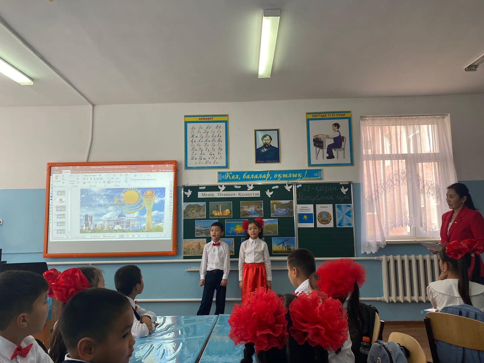 3”Б”сынып жетекшісі Утесинова Айгул Орынбаевна 25 қазан - Республика күніне орай “Қазақ елі менің-Отаным” тақырыбында тәрбие сағатын өткізді.Тәрбие сағатында Егеменді еліміздің дамуы, тәуелсіз Отанымыз туралы мағлұматтар беріп, оқушылар тақпақтар, патриоттық әндер айтып тәрбие сағаты өте жақсы өтті.