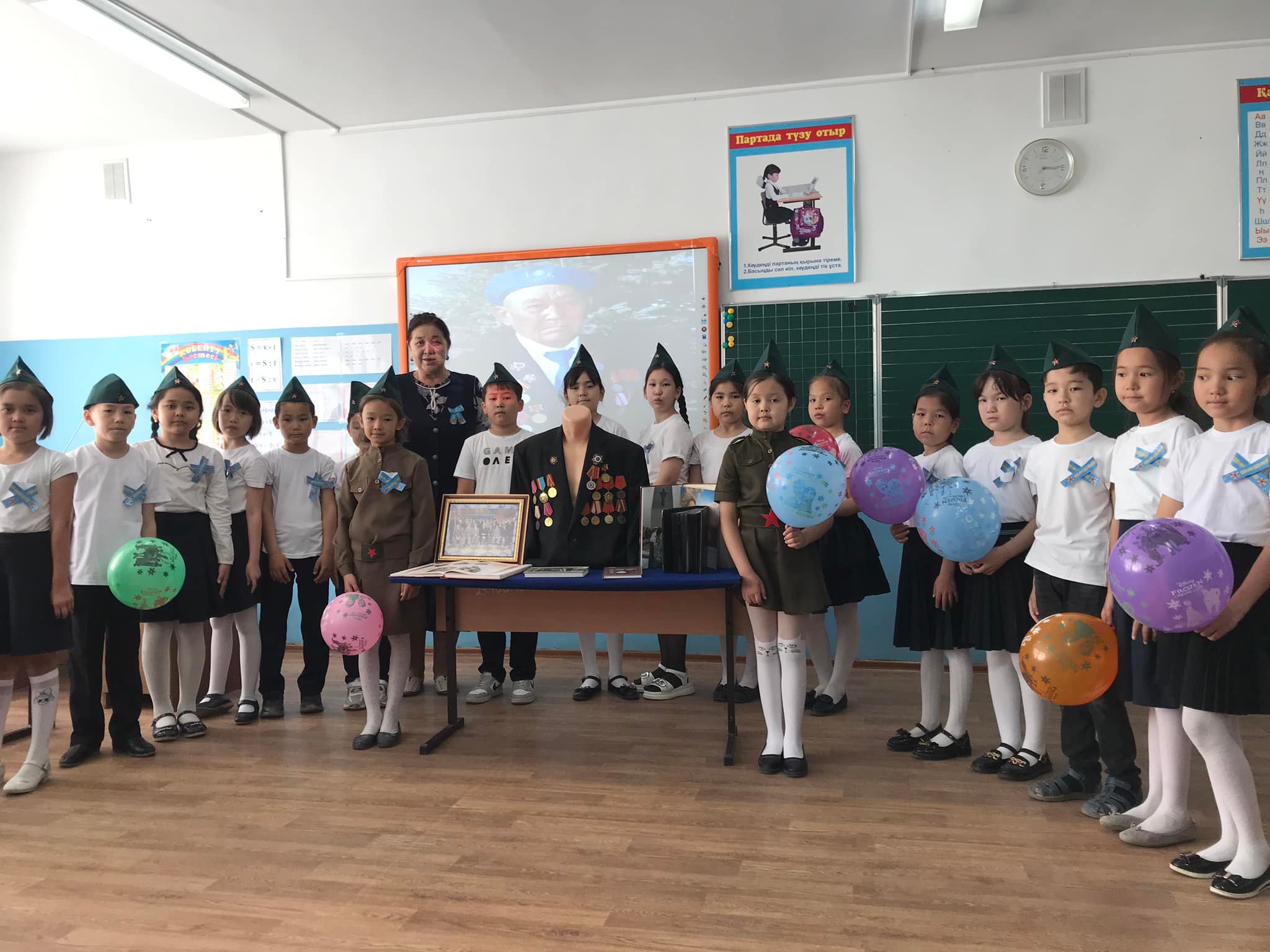 3 "А" сынып жетекшісі Джайлыбаева Нина Жеңіс күніне орай "Бейбіт күн жасасын әлемде!" тақырыбымен тәрбие сағатын өткізді. Ұлы Отан соғысына қатысқан Қазақстандық батырлар, 28 Панфиловшылар дивизиясы туралы әңгімелеп, оқушылар тақпақтар мен әндер айтты.